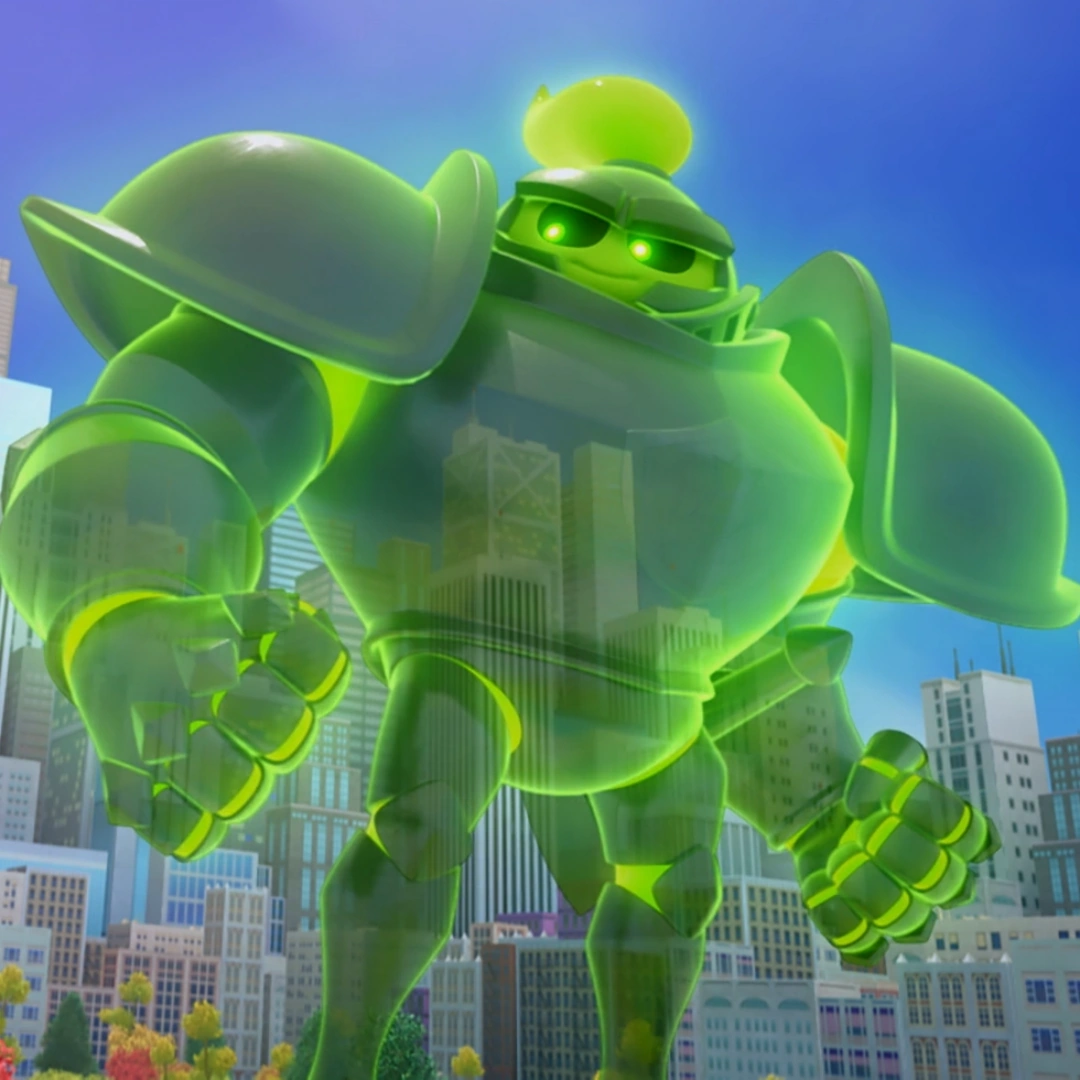 Upon merging with a suit of armor, Glups became a giant knight armed with a sword with a blade made out of jelly.