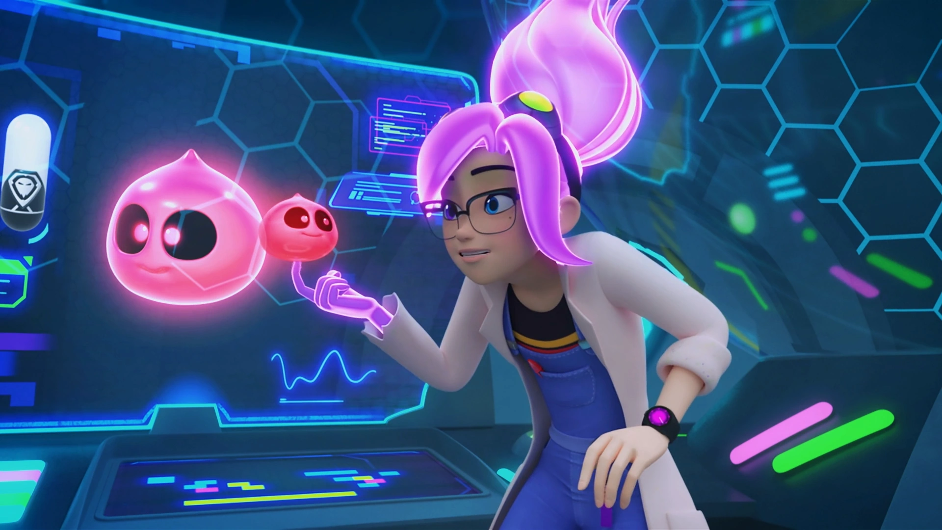 In "Jellyjack", Liv was entrusted by Miss Jones to feed Glups with one more Scaryball while she was upgrading Glowboo. However, after Glups ate a Scaryball in the garage, he was still hungry and tried to convince Liv to feed him more. When Liv reminded Glups about Miss Jones's warning, Glups used his cuteness against her because he was aware that Liv couldn't handle ghosts she found adorable. This convinced Liv to fire one more Scaryball, though it indirectly caused Glups to accidentally escape from the lab via the portal meant for the Ghost Car. After he was captured by the Ghostforce and deboosted back to his tamed self, Glups forgave Liv for accidentally causing him to become a wild ghost.